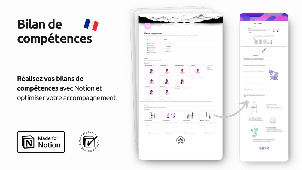 Ce modèle est la solution que vous attendiez pour gérer l'accompagnement de vos clients de manière optimale. Que vous soyez un consultant indépendant ou que vous opériez au sein d'une structure, ce modèle vous permet de gérer efficacement le processus de bilan de compétences, personnaliser votre parcours client et améliorer en continu votre méthode.