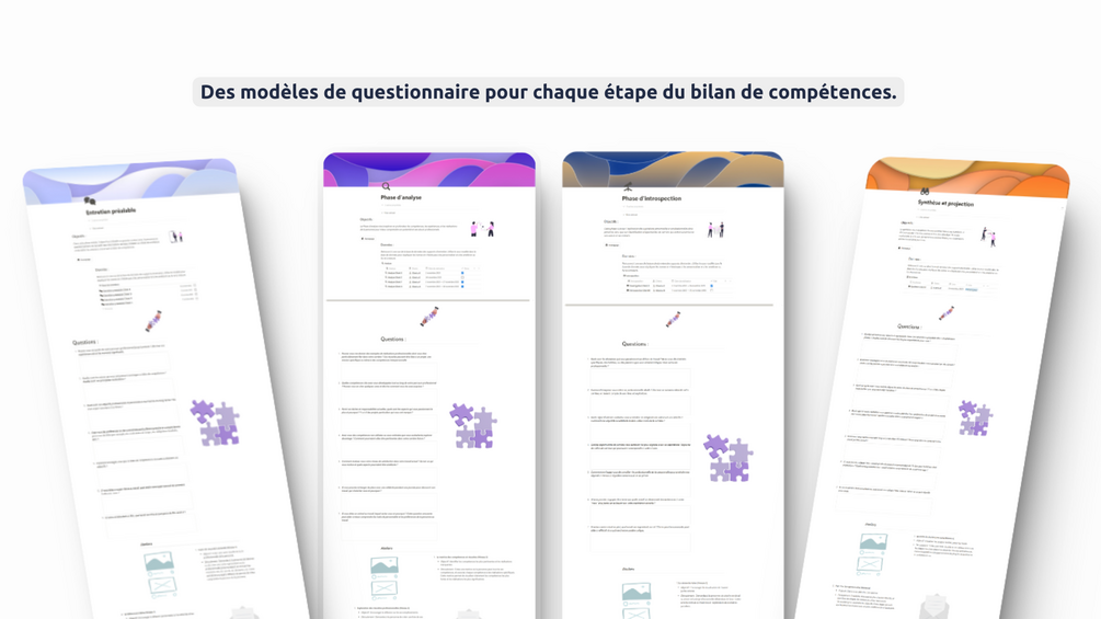 Ce modèle facilite la gestion et l'optimisation des bilans de compétences, offrant toutes les fonctionnalités nécessaires pour accompagner efficacement vos clients vers de nouvelles orientations professionnelles..