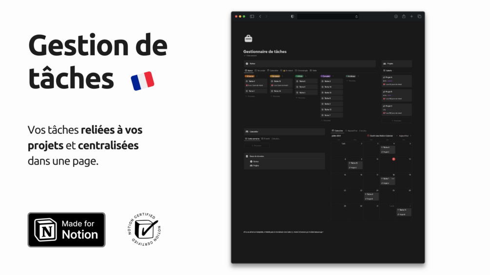 L'objectif est de pouvoir créer, suivre et rattacher les tâches à vos projets pour une meilleure visualisation de votre emploi du temps.