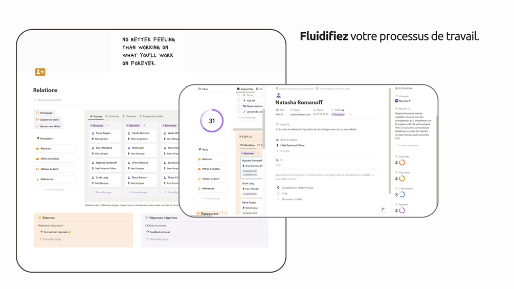 - Pipeline de recrutement intuitif et adaptable